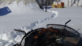Nous avons du déneiger le BBQ. Trouver du bois sec pour démarrer le feu était problématique. Nous avions des écorces de bouleau comme allume feu. Nous avons pris des brindilles de bois mort dans les arbres et le feu à démarré sans problèmes.