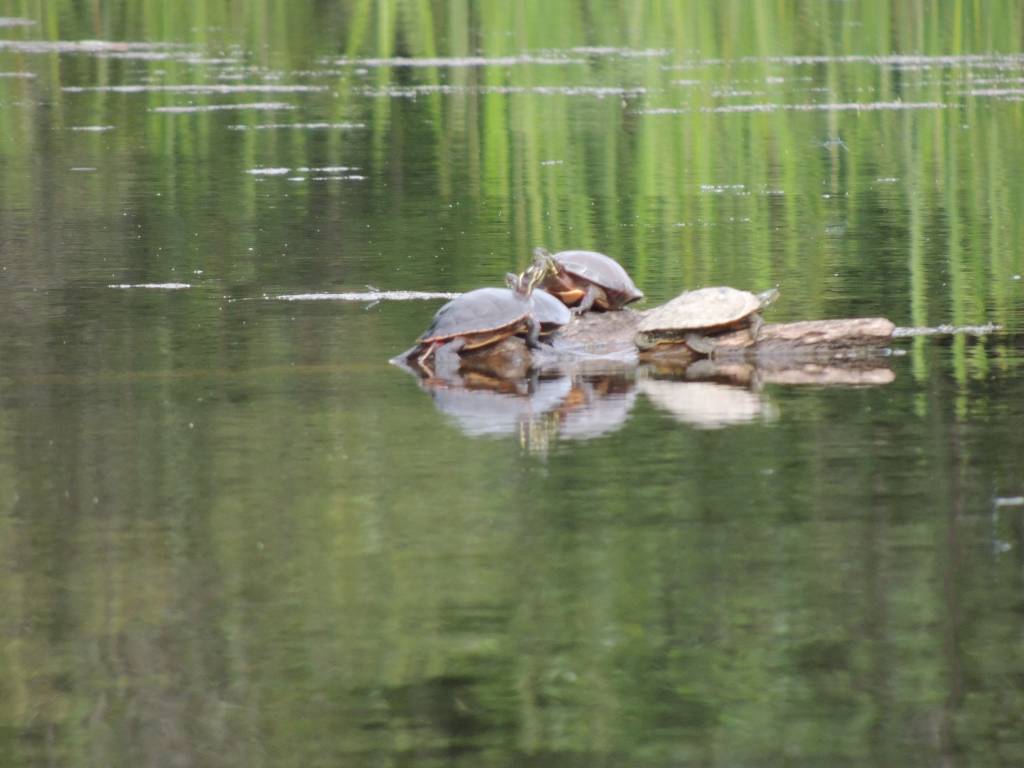 Lors d’une sortie en canoë, j’ai eu le bonheur d’observer quelques tortues perchées sur des bois et prenant le soleil.