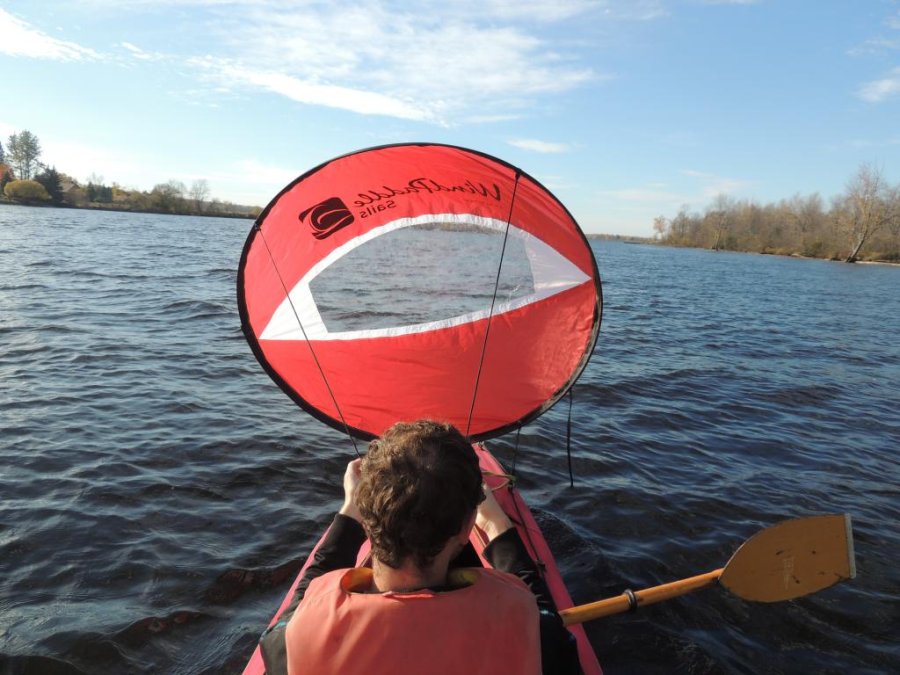 Le 22 octobre 2017, il fait grand soleil et doux, 20 degrés. Un vent de 10 à 20 km/h souffle sur la rivière des Outaouais dans le sens opposé au courant. Cela crée des toutes petites vagues, courtes avec parfois des déferlantes. Je mets le kayak Klepper expédition à l’eau avec la voile Windsurf. Un après midi de bonheur !