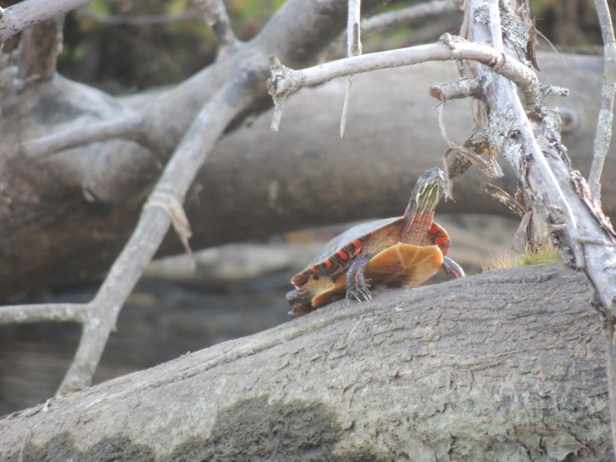 On a vu des hérons, un martin pêcheur, des oies, une tortue.